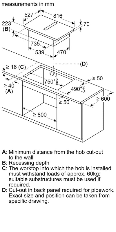 - Min. worktop thickness: 16 mm