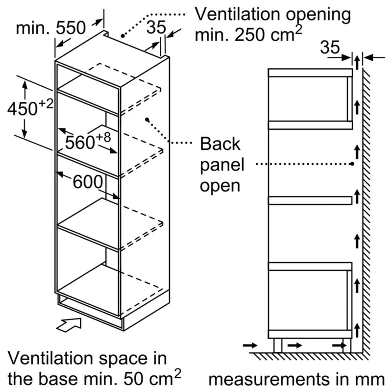 - Niche dimension (hxwxd): 450 mm - 458 mm x 560 mm - 568 mm x 550 mm